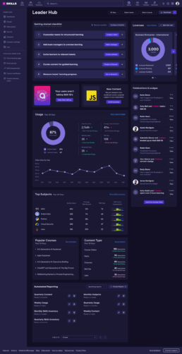 Analytics – where Leaders can view what learners are engaging with and help guide their learners to engaged in content that is important to the company.