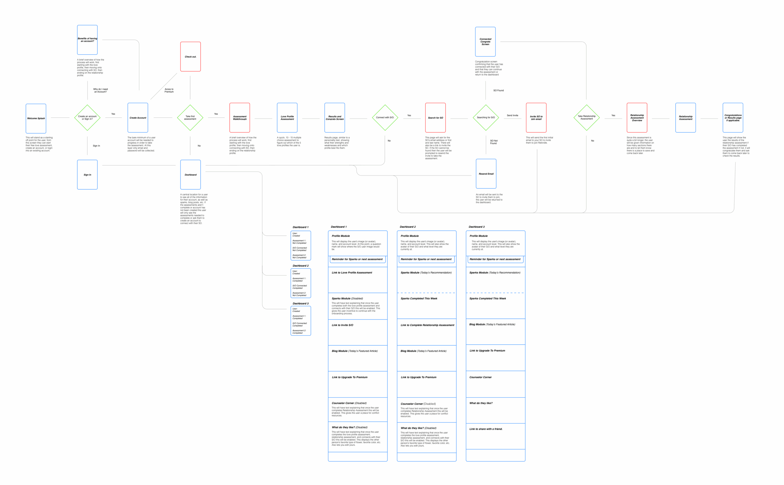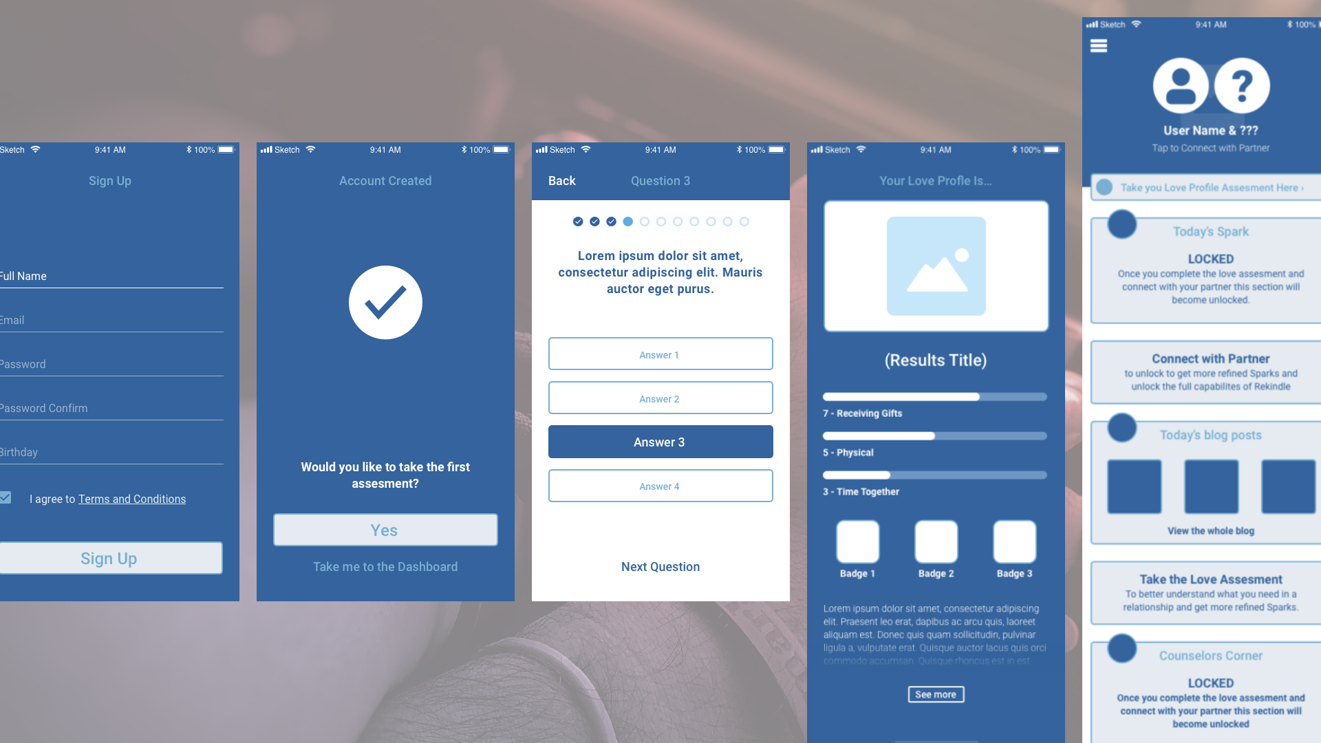 The user flows for ReKindle were some of the most complex I have ever built. There were multiple assessments that had to be created, where each one unlocked new features of the app. Once all the assessments had been completed, there was also a paid tier that unlocked even more features. This took quite a bit of communication between myself and the clients to make sure that every piece of this puzzle was in the user flow.